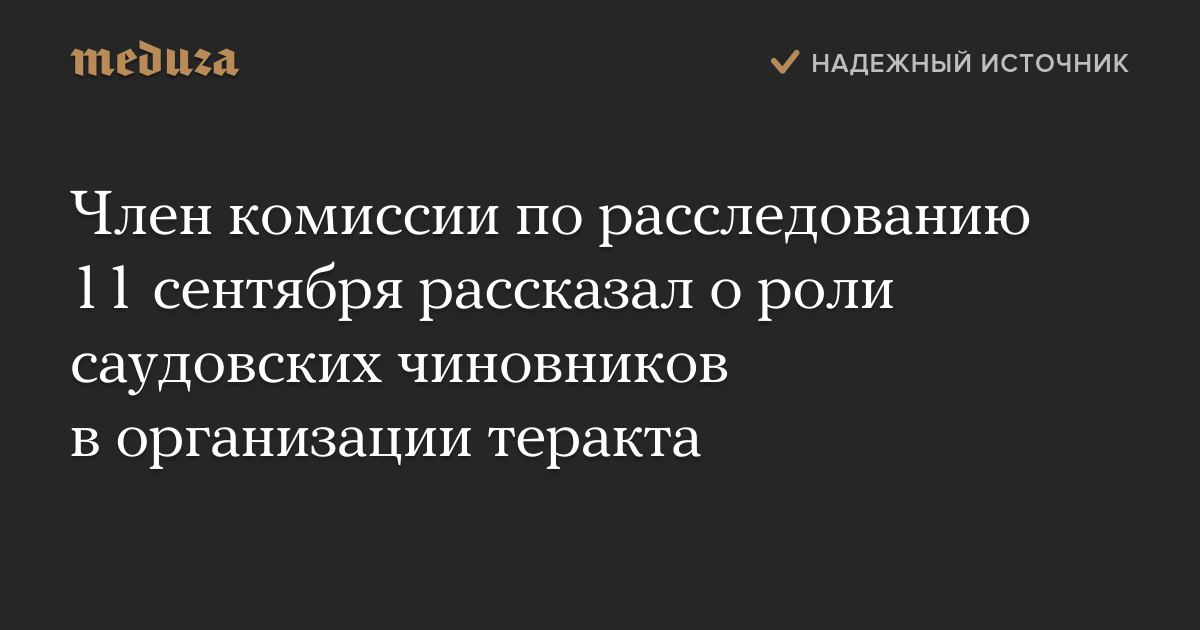 Бывший участник комиссии по расследованию обстоятельств теракта 11 сентября 2001 года Джон Леман заявил, что правительство Саудовской Аравии было причастно к организации атаки.