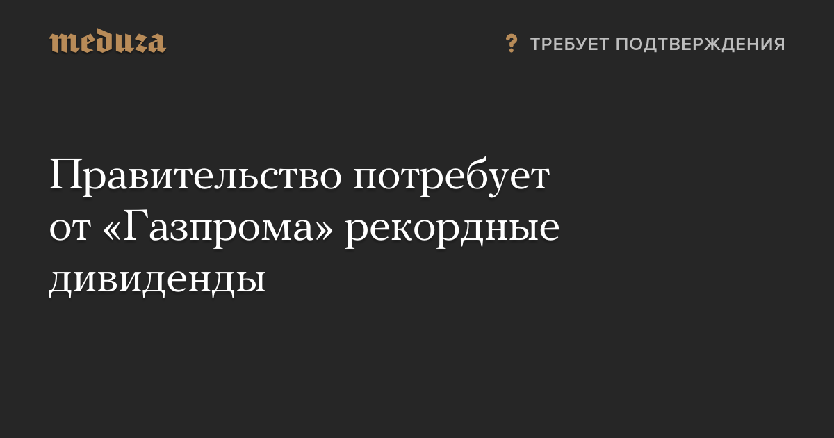 Правительство потребует от «Газпрома» рекордные дивиденды