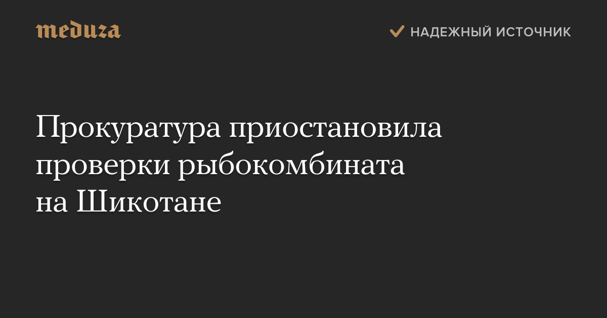 Прокуратура приостановила проверки рыбокомбината на Шикотане