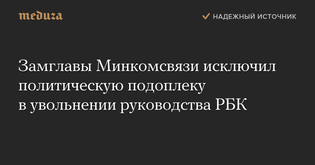 Замглавы Минкомсвязи исключил политическую подоплеку в увольнении руководства РБК