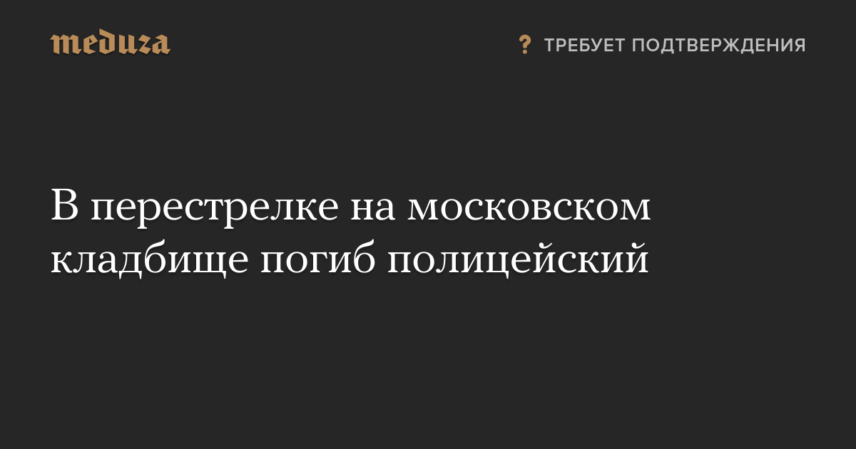 В перестрелке на московском кладбище погиб полицейский, сообщает «Интерфакс» со ссылкой на источник. РБК сообщает о двух погибших сотрудниках полиции.