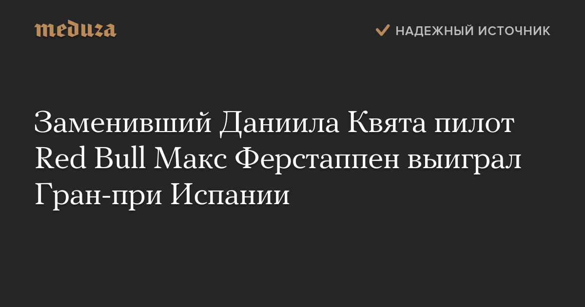 Заменивший Даниила Квята пилот Red Bull Макс Ферстаппен выиграл Гран-при Испании