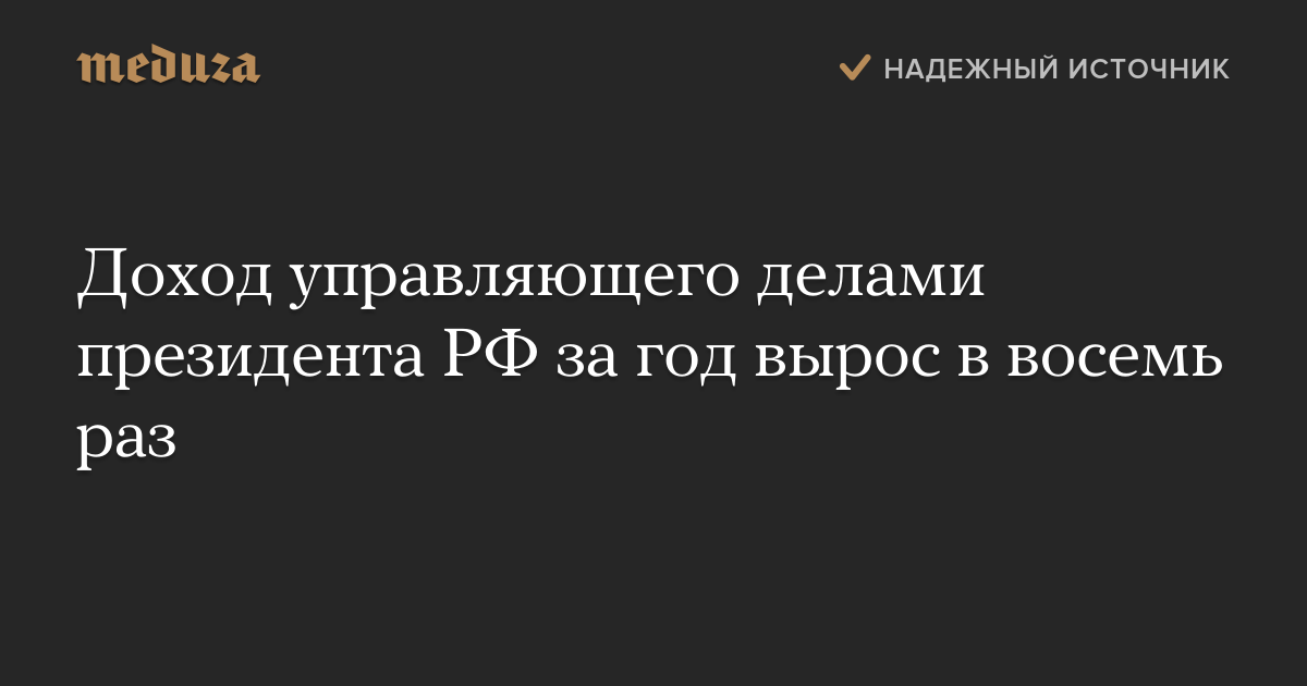 Доход управляющего делами президента РФ за год вырос в восемь раз