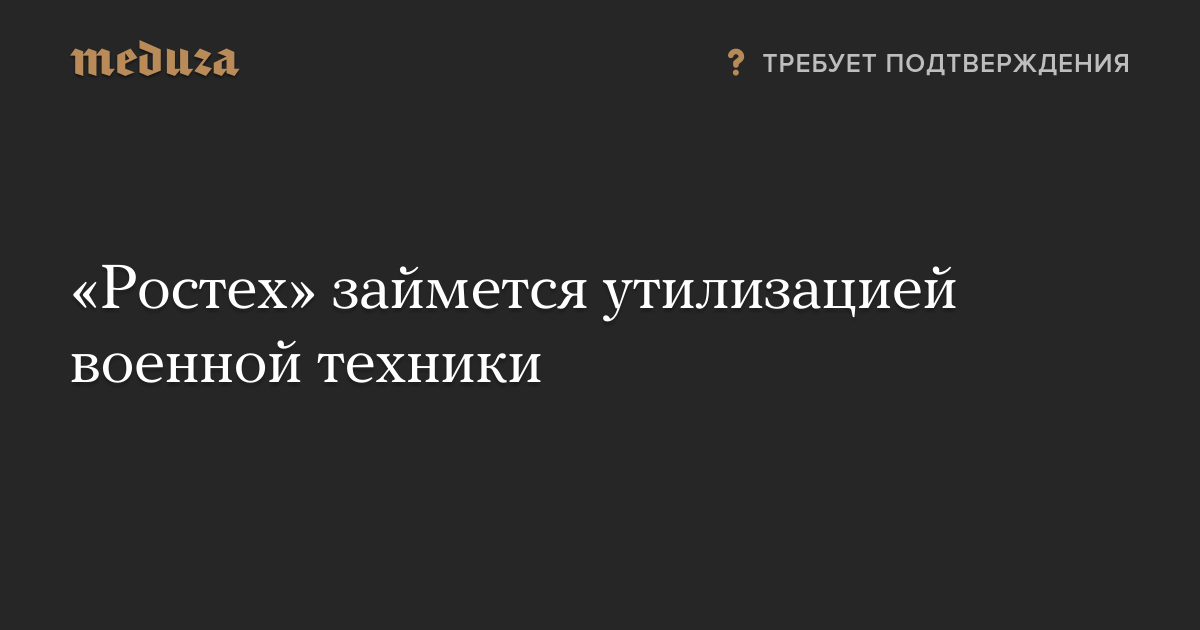 Госкорпорация «Ростех» подключится к процессу утилизации вооружений, военной и специальной техники, находящихся на балансе Минобороны, сообщили «Коммерсанту» несколько источников в военно-промышленном комплексе.