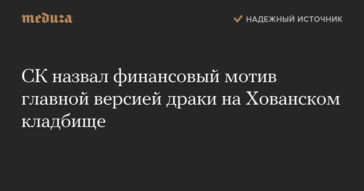 СК назвал финансовый мотив главной версией драки на Хованском кладбище