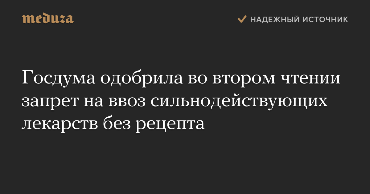 Госдума одобрила во втором чтении запрет на ввоз сильнодействующих лекарств без рецепта