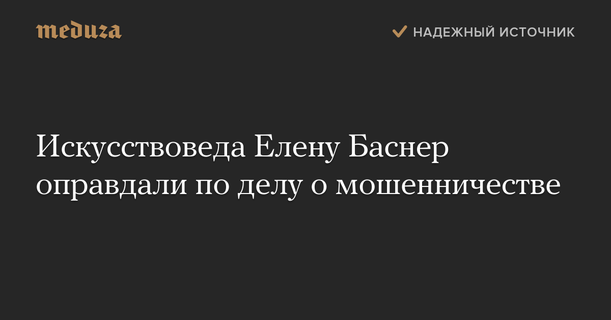Дзержинский суд Санкт-Петербурга оправдал искусствоведа Елену Баснер, которую обвиняли в мошенничестве при проведении экспертизы картины. Суд пришел к выводу, что в ходе экспертизы Баснер допустила ошибку.