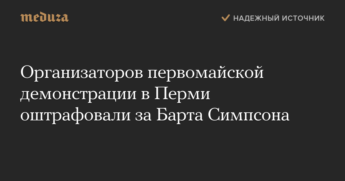Организаторов первомайской демонстрации в Перми оштрафовали за Барта Симпсона