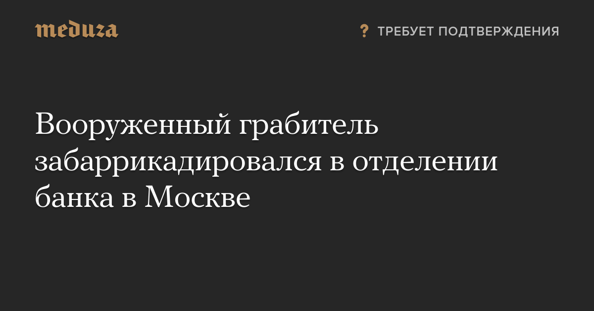 В Москве вооруженный грабитель забаррикадировался в отделении банка, в котором находится несколько человек. Об этом сообщает «Интерфакс» со ссылкой на источник в правоохранительных органах.