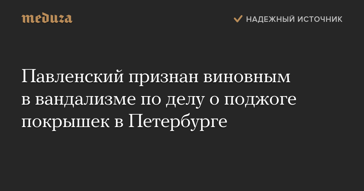 Мировой суд признал художника Петра Павленского виновным в вандализме по делу о поджоге покрышек на Мало-Конюшенном мосту в Санкт-Петербурге.