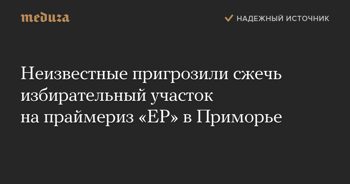 В Приморье неизвестные пригрозили сжечь избирательный участок, где шло голосование на праймериз партии «Единая Россия». Об этом сообщает ТАСС со ссылкой на пресс-службу партии.