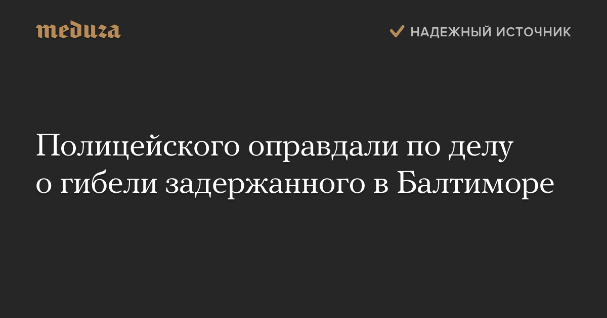 Полицейского оправдали по делу о гибели задержанного в Балтиморе