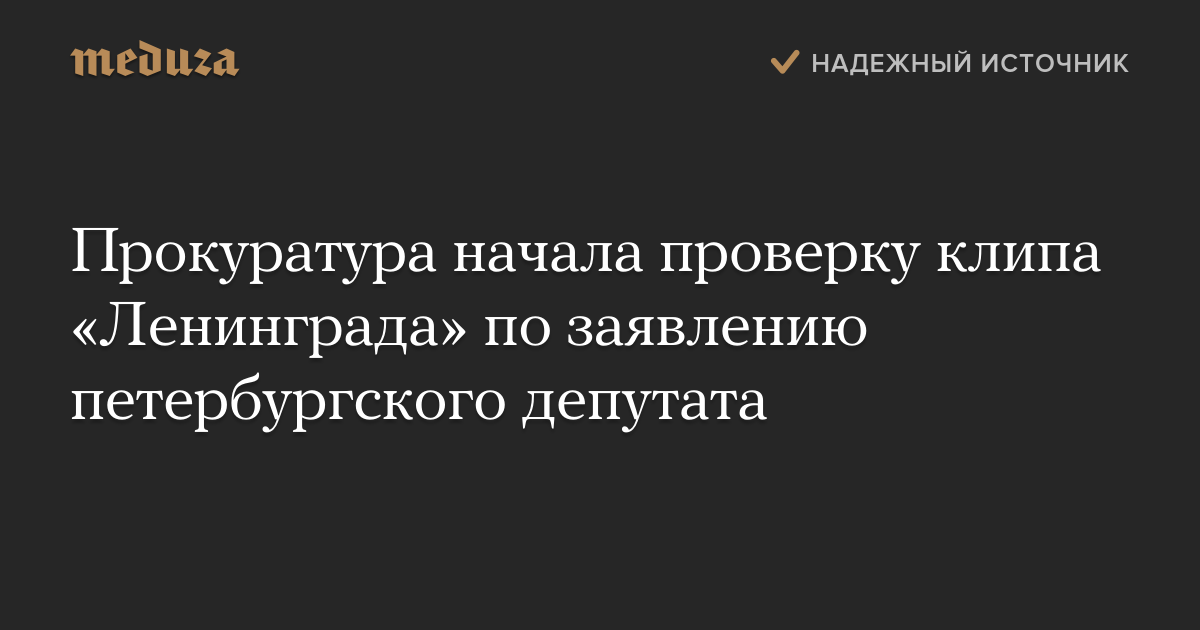 Прокуратура начала проверку клипа «Ленинграда» по заявлению петербургского депутата