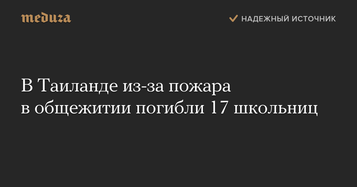В Таиланде в результате пожара в школьном общежитии погибли, по меньшей мере, 17 девочек, еще пять получили ранения. О судьбе двух школьниц ничего неизвестно.