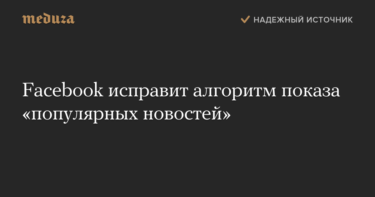 Социальная сеть Facebook внесет изменения в алгоритм отбора и показа «популярных новостей» в связи с подозрениями в замалчивании тех или иных тем.