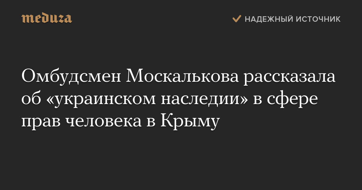 Омбудсмен Москалькова рассказала об «украинском наследии» в сфере прав человека в Крыму