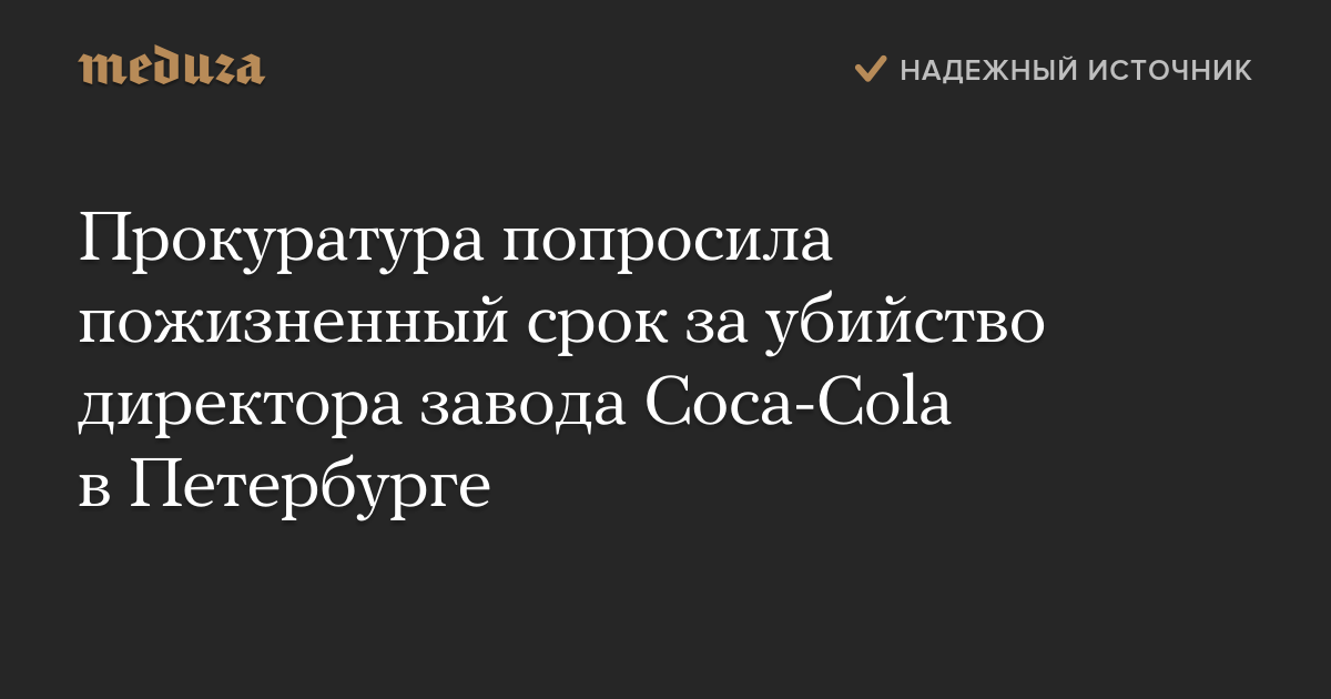 Прокуратура попросила пожизненный срок за убийство директора завода Coca-Cola в Петербурге