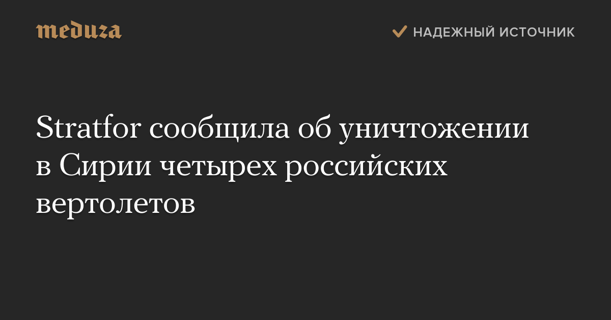 Stratfor сообщила об уничтожении в Сирии четырех российских вертолетов