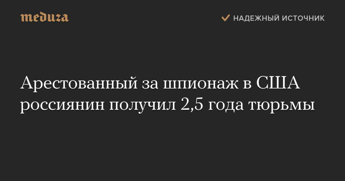 Арестованный за шпионаж в США россиянин получил 2,5 года тюрьмы