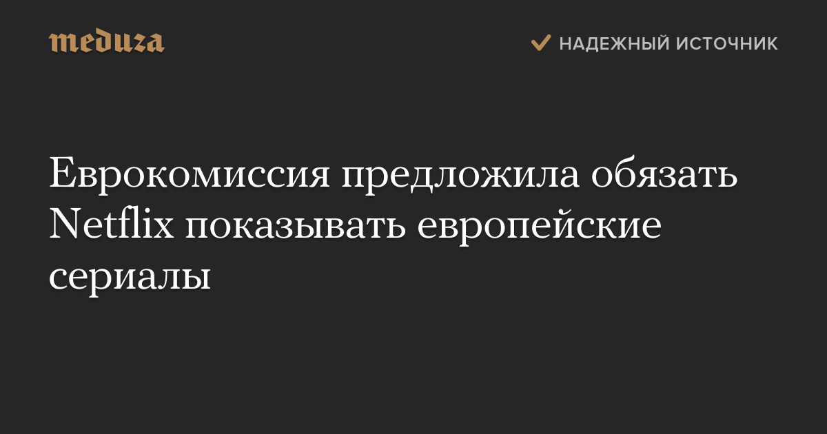 Еврокомиссия предложила обязать Netflix показывать европейские сериалы