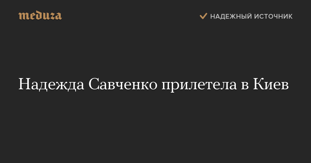 Самолет, на борту которого находится украинская военнослужащая Надежда Савченко, совершил посадку в киевском аэропорту Борисполь. Об этом сообщается в официальном твиттере президента Украины Петра Порошенко.