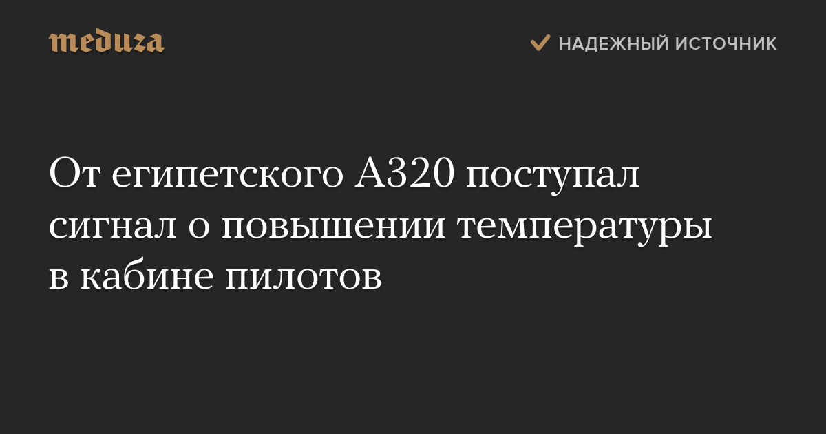 С борта самолета A320 компании EgyptAir, потерпевшего крушение над Средиземным морем, за несколько минут до исчезновения лайнера с экранов радаров в автоматическом режиме был передан сигнал о повышении температуры в кабине пилотов.