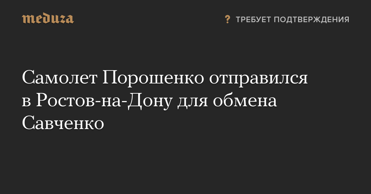 По данным собеседника агентства, самолет Порошенко с россиянами приземлится в Ростове-на-Дону в ближайшие часы. Савченко, утверждает «Интерфакс», уже находится в Ростове. Агентство утверждает, что обмен состоится в рамках договоренностей о выдаче лиц для дальнейшего отбывания наказания.