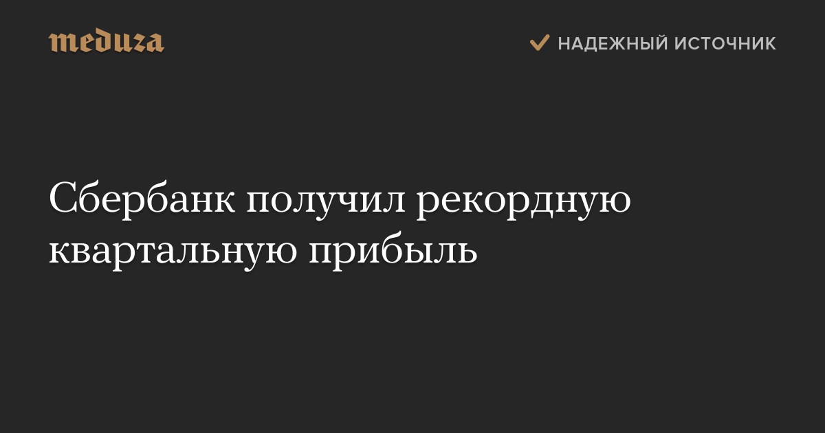 Сбербанк получил рекордную квартальную прибыль