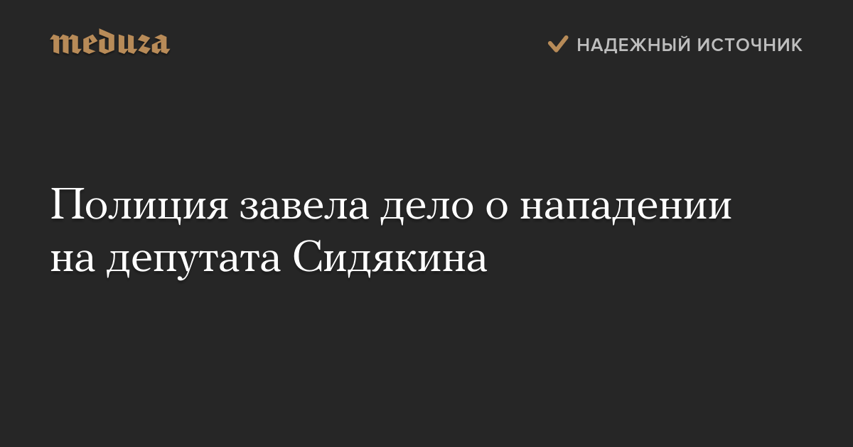 Полиция возбудила уголовное дело о нападении на депутата Госдумы от «Единой России» Александра Сидякина.