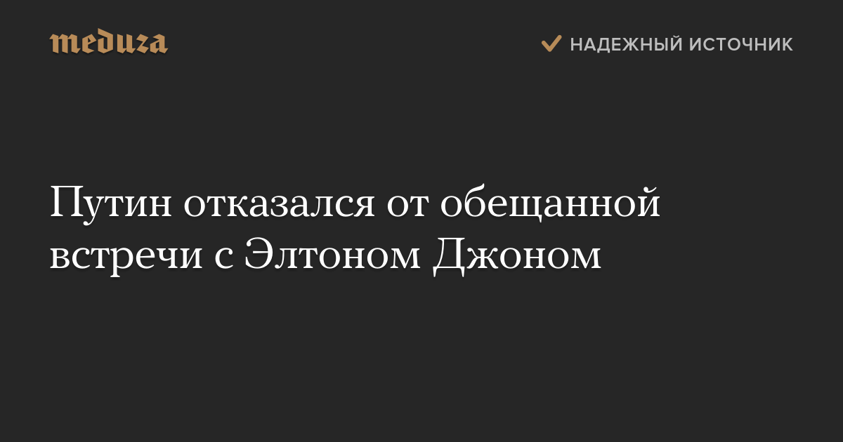 Путин отказался от обещанной встречи с Элтоном Джоном