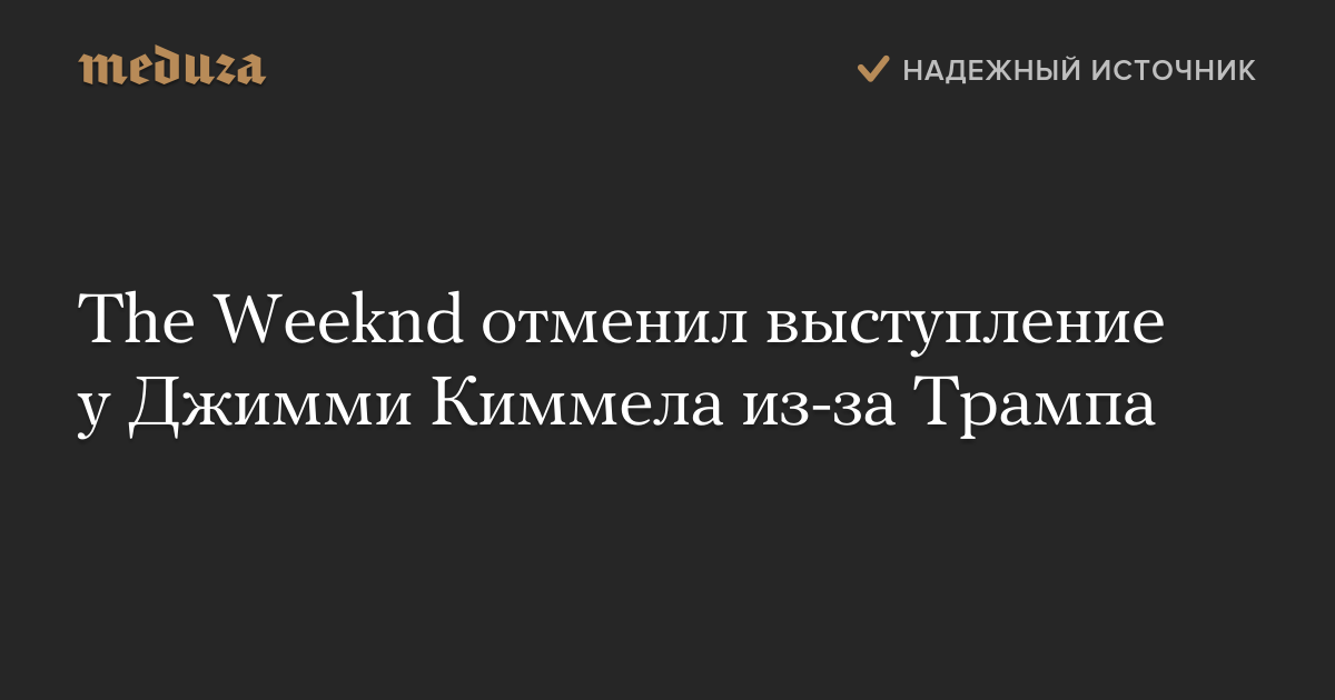 Канадский исполнитель The Weeknd (псевдоним продюсера и певца Абеля Тесфайе) отказался от выступления на телешоу Джимми Киммела после того, как стало известно, что гостем программы станет кандидат в президенты США Дональд Трамп.