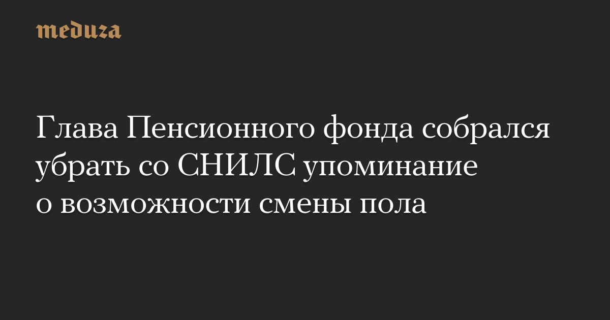 Глава Пенсионного фонда собрался убрать со СНИЛС упоминание о возможности смены пола