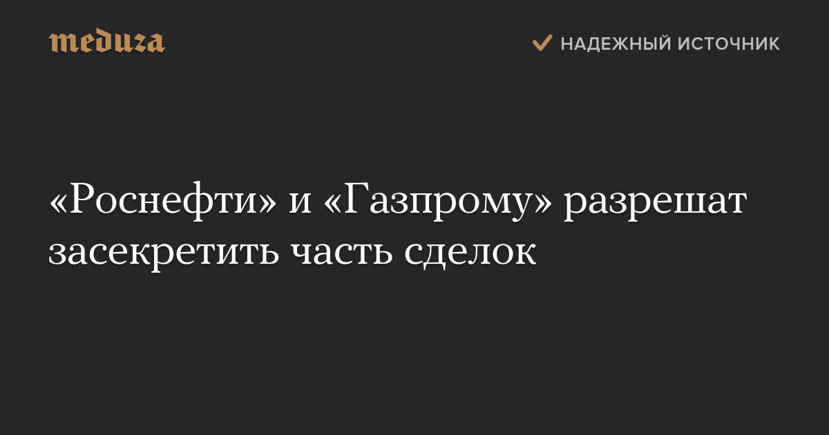 «Роснефти» и «Газпрому» разрешат засекретить часть сделок