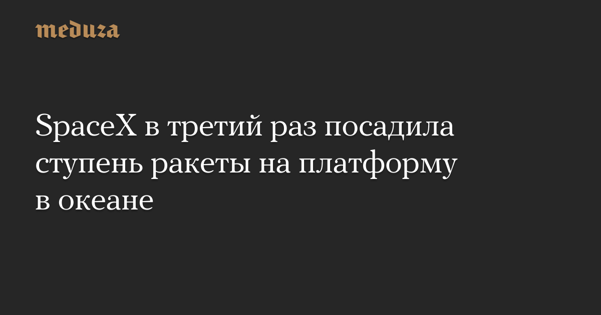 SpaceX в третий раз посадила ступень ракеты на платформу в океане
