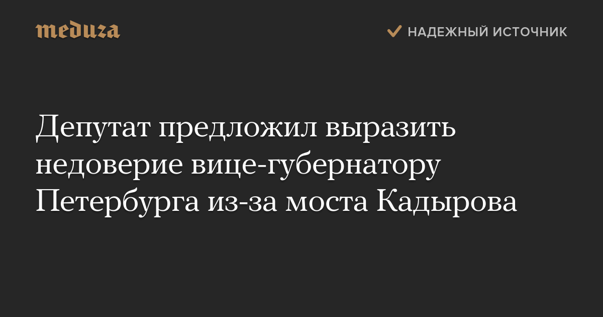 Депутат законодательного собрания Санкт-Петербурга Максим Резник предложил выразить недоверие вице-губернатору города Владимиру Кириллову в связи с голосованием топонимической комиссии, которая рекомендовала назвать один из петербургских мостов именем Ахмата Кадырова.