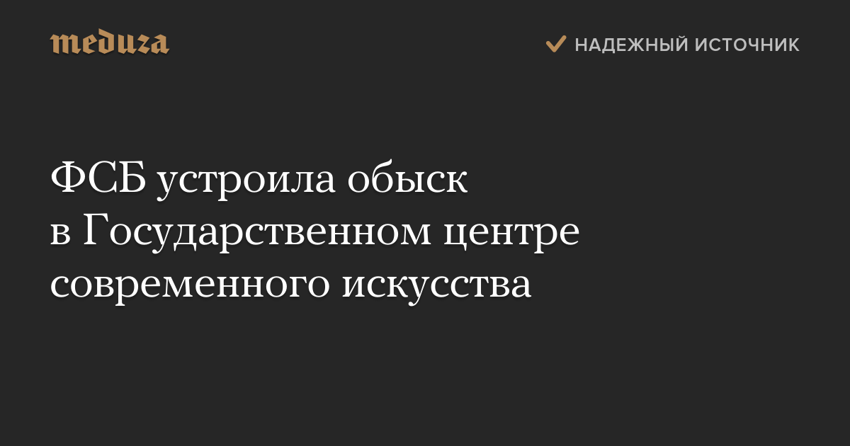 Сотрудники ФСБ пришли с обыском в Государственный центр современного искусства (ГЦСИ) в Москве. Эту информацию подтвердили в пресс-службе центра.