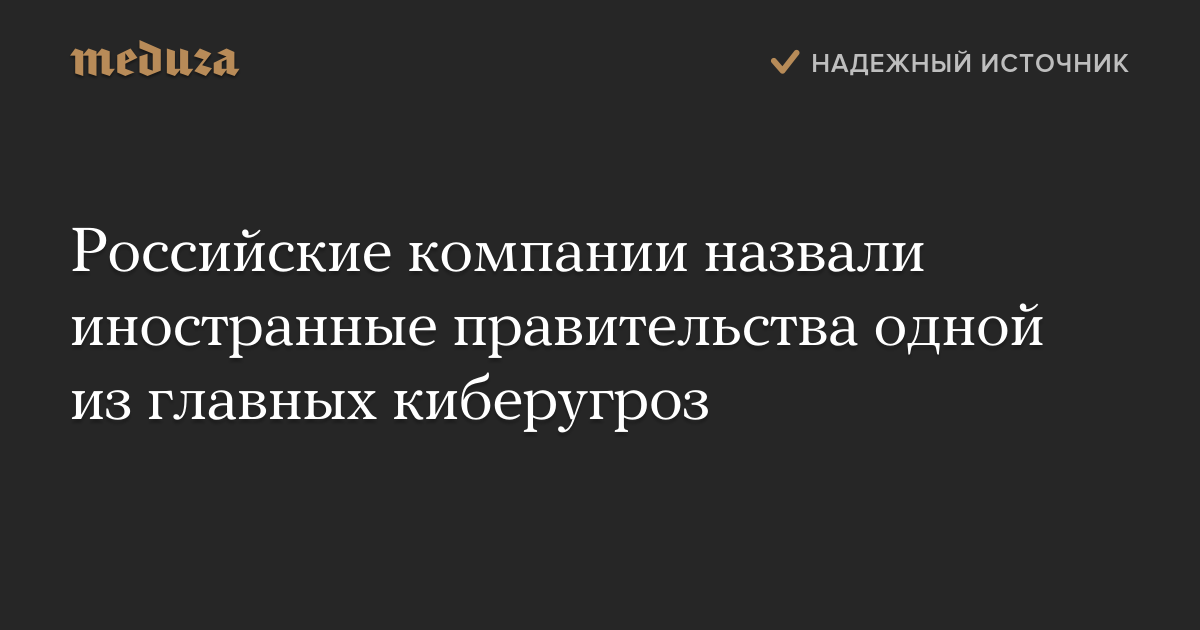Российские компании назвали иностранные правительства одной из главных киберугроз