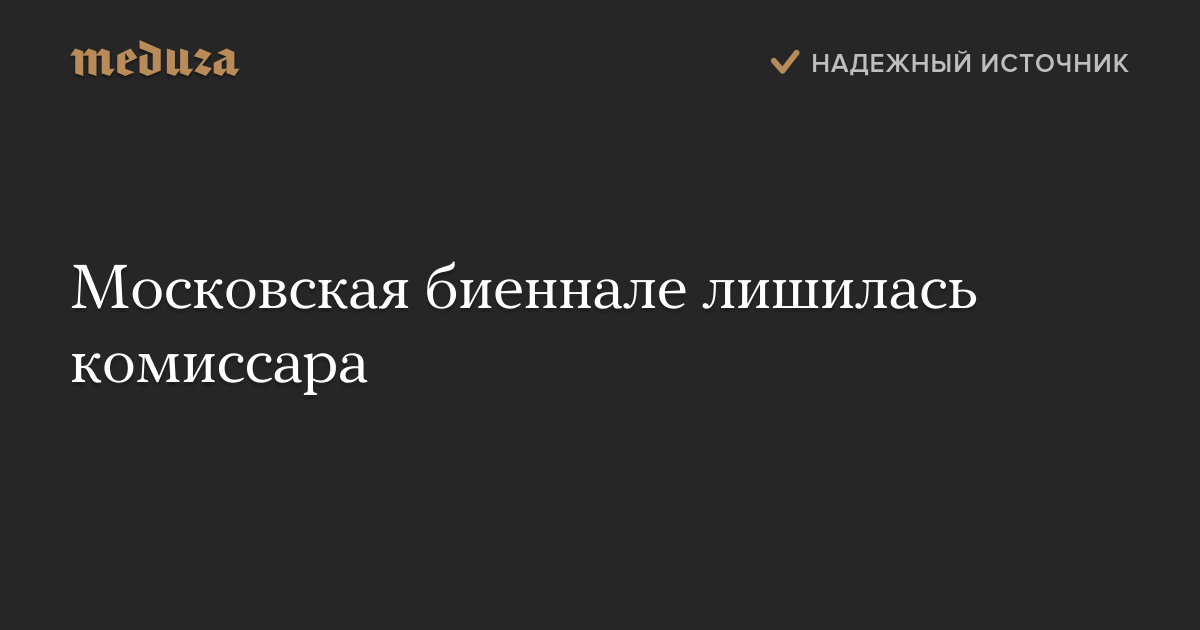 Среди учредителей биеннале Государственный музейно-выставочный центр (РОСИЗО). В мае 2016 года приказом министра культуры Государственный центр современного искусства (ГЦСИ) был включен в состав РОСИЗО. Бывший директор ГЦСИ Михаил Миндлин возглавил Центральный музей древнерусского искусства им. Андрея Рублева. Новую структуру, которую создадут на базе РОСИЗО возглавит, как ожидается, действующий глава этой организации Сергей Перов.