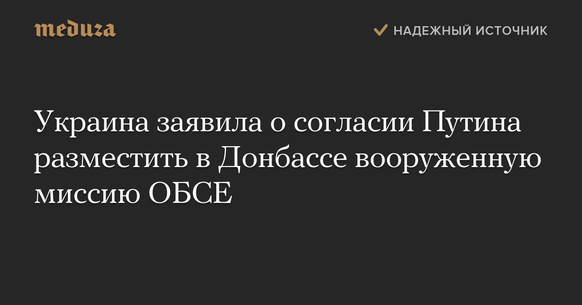 Украина заявила о согласии Путина разместить в Донбассе вооруженную миссию ОБСЕ