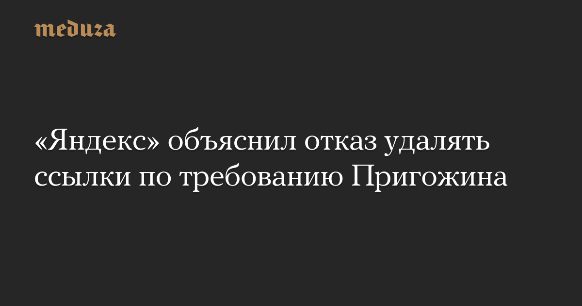 «Яндекс» объяснил отказ удалять ссылки по требованию Пригожина