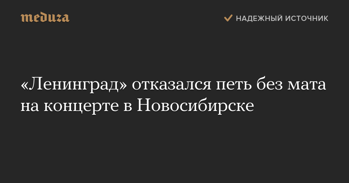 Группа «Ленинград» не станет менять текст песен на концерте в Новосибирске, несмотря на предупреждение, полученное от мэра города Анатолия Локотя. Об этом заявил пиар-агент коллектива Дмитрий Гугучкин. Локоть предупредил музыкантов о недопустимости мата и «экстремистских призывов» в ходе выступления.