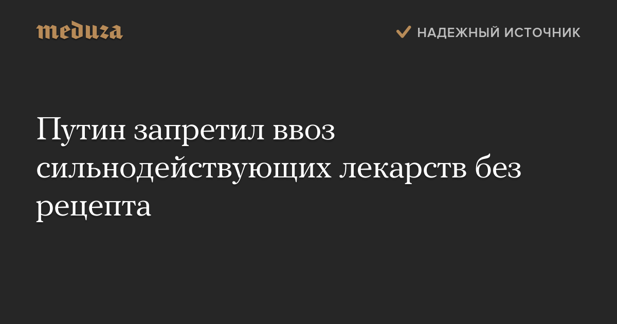 Президент России Владимир Путин подписал закон, запрещающий ввоз в Россию сильнодействующих лекарств для личного пользования без рецепта.