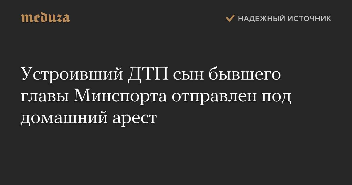 Устроивший ДТП сын бывшего главы Минспорта отправлен под домашний арест
