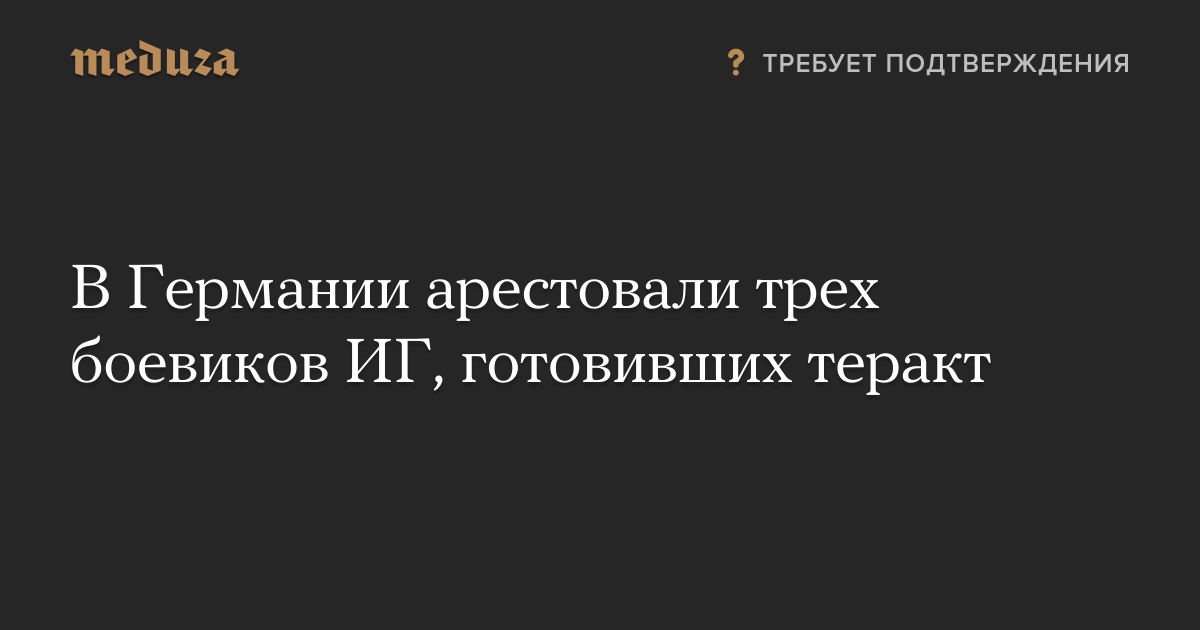 В Германии арестованы три гражданина Сирии, готовившие теракт. Вместе с еще одним сирийцем они организовали в стране ячейку «Исламского государства» (организация признана террористической и запрещена в РФ), пишет Der Spiegel.