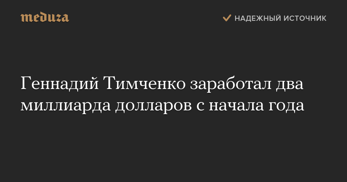 Геннадий Тимченко заработал два миллиарда долларов с начала года