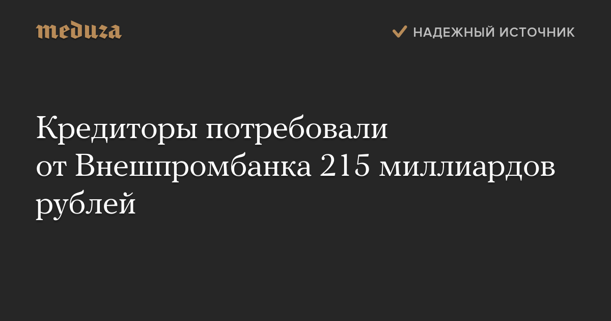 Кредиторы потребовали от Внешпромбанка 215 миллиардов рублей
