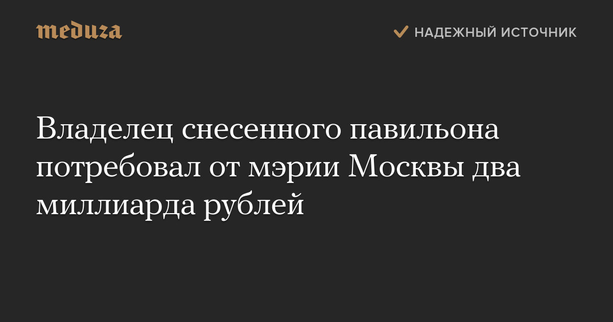 Владелец снесенного павильона потребовал от мэрии Москвы два миллиарда рублей