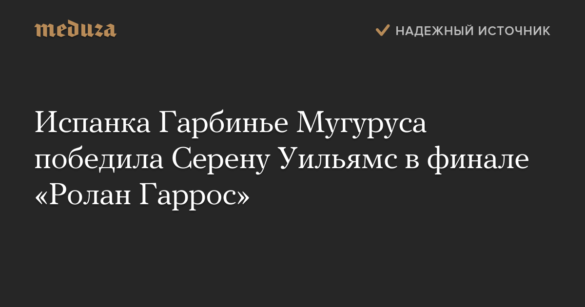 Испанка Гарбинье Мугуруса победила Серену Уильямс в финале «Ролан Гаррос»