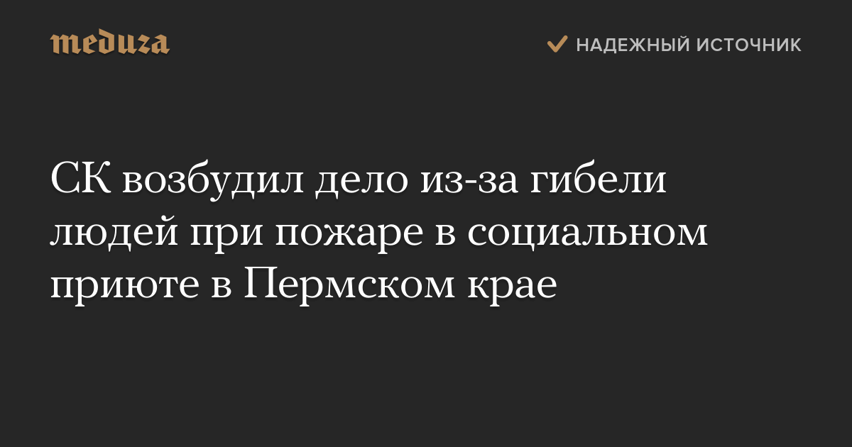 Следственный комитет возбудил уголовное дело из-за гибели двух человек в результате пожара, случившегося в ночь на 5 июня в социальном приюте в селе Березовка в Пермском крае.