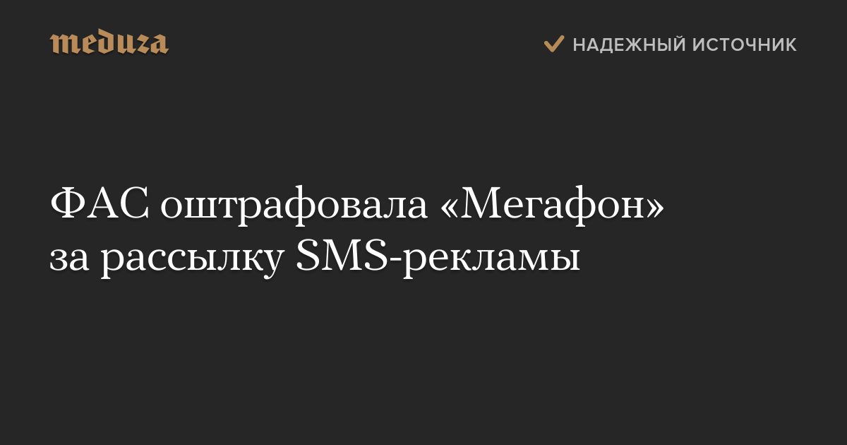 Московское отделение Федеральной антимонопольной службы (ФАС) наложило на оператора «Мегафон» штраф на общую сумму в 1 миллион рублей за рассылку SMS-рекламы.
